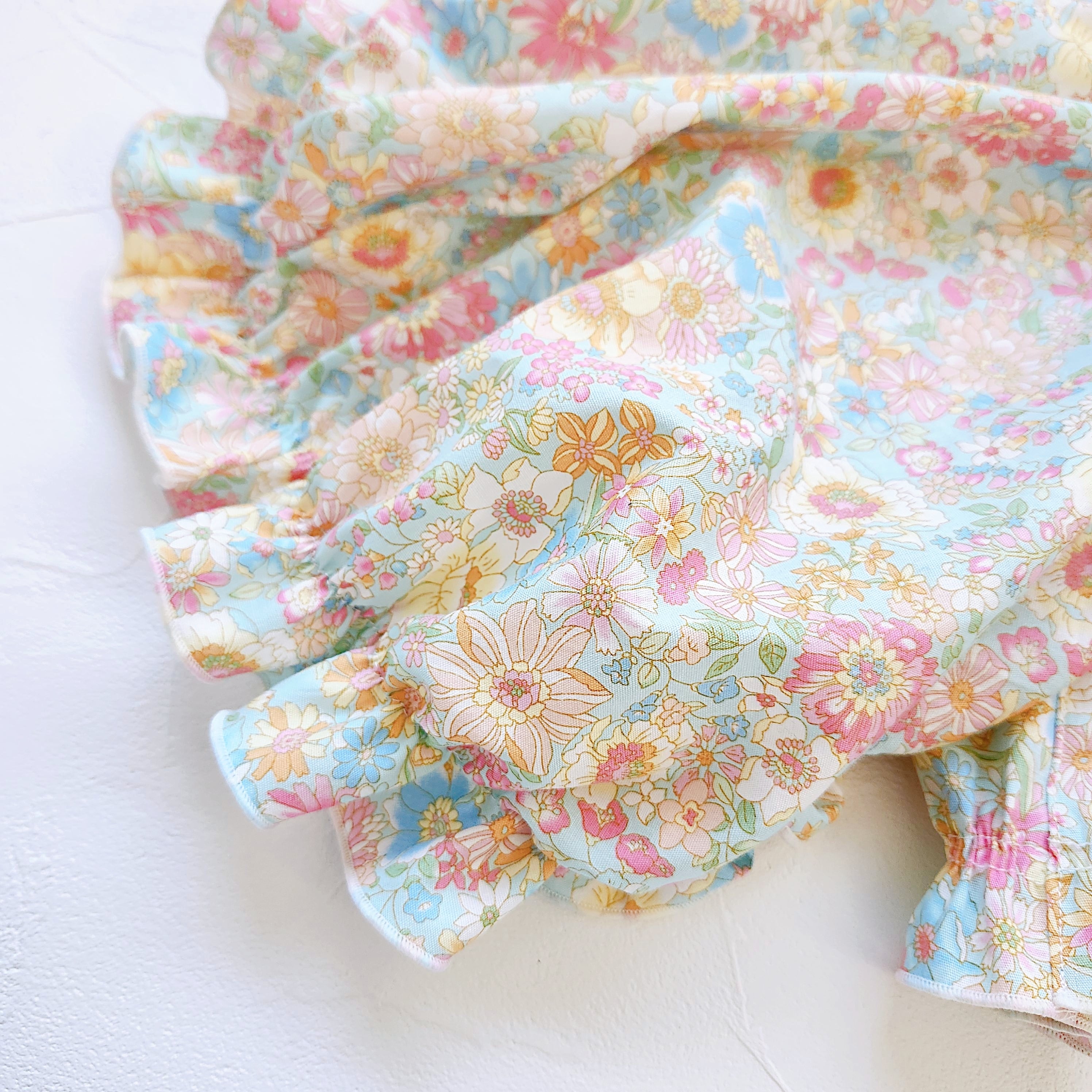 犬服*小花柄ふんわりシャーリングブラウス/アイスブルー
