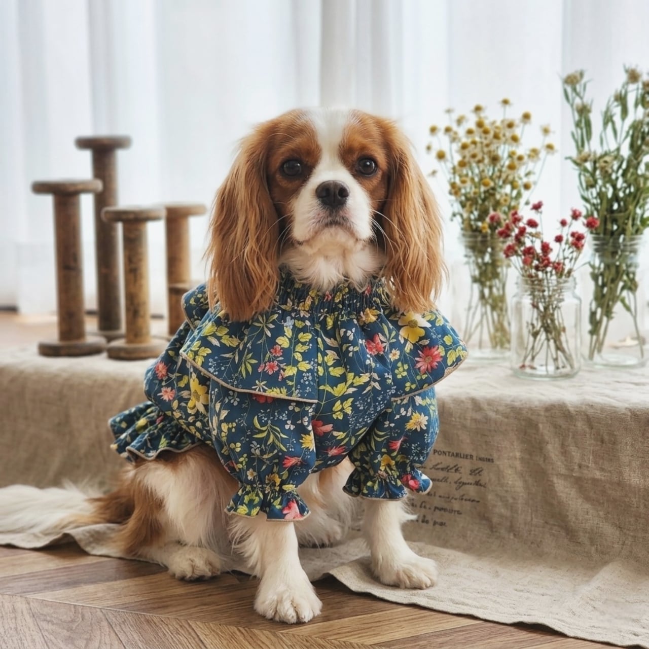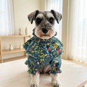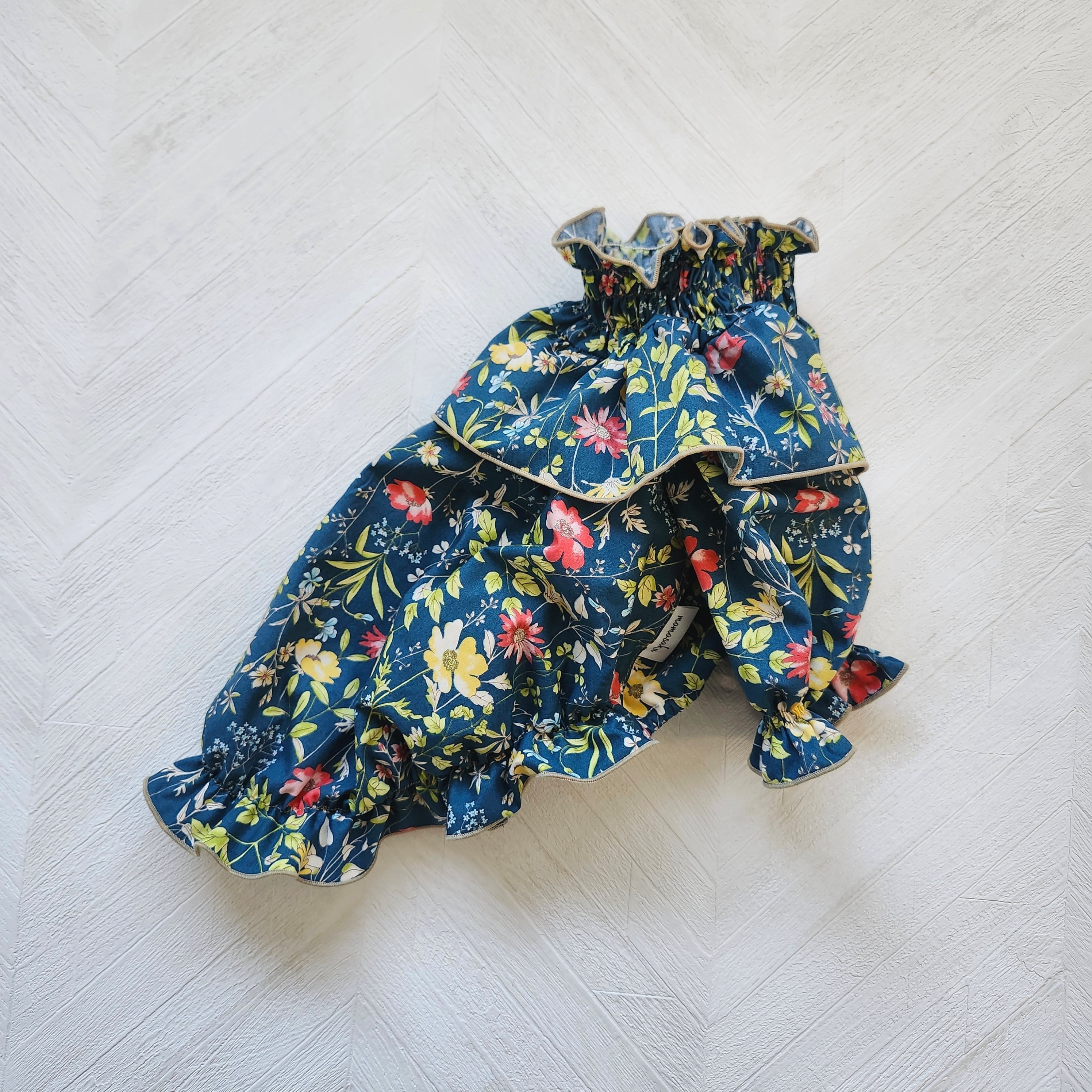 犬服*小型犬 花柄フリルブラウス│春のナチュルフラワー/アンティークブルー