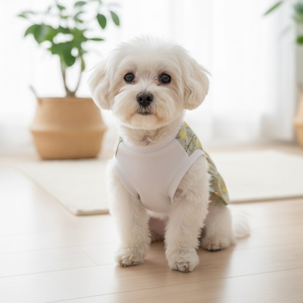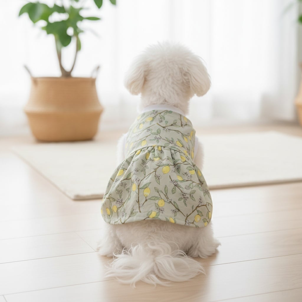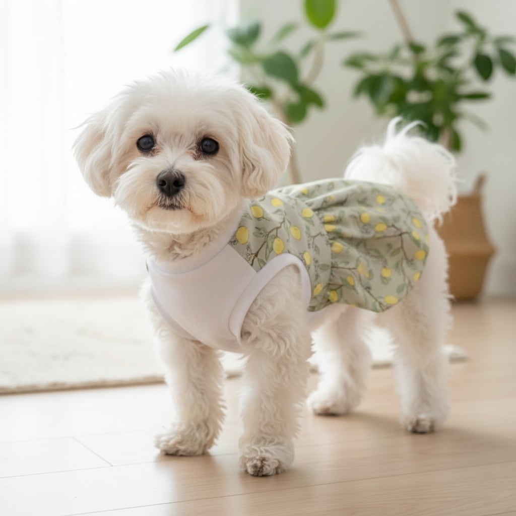 春夏のお散歩にぴったりな『犬服*くすみカラーのレモンタンクトップ』。