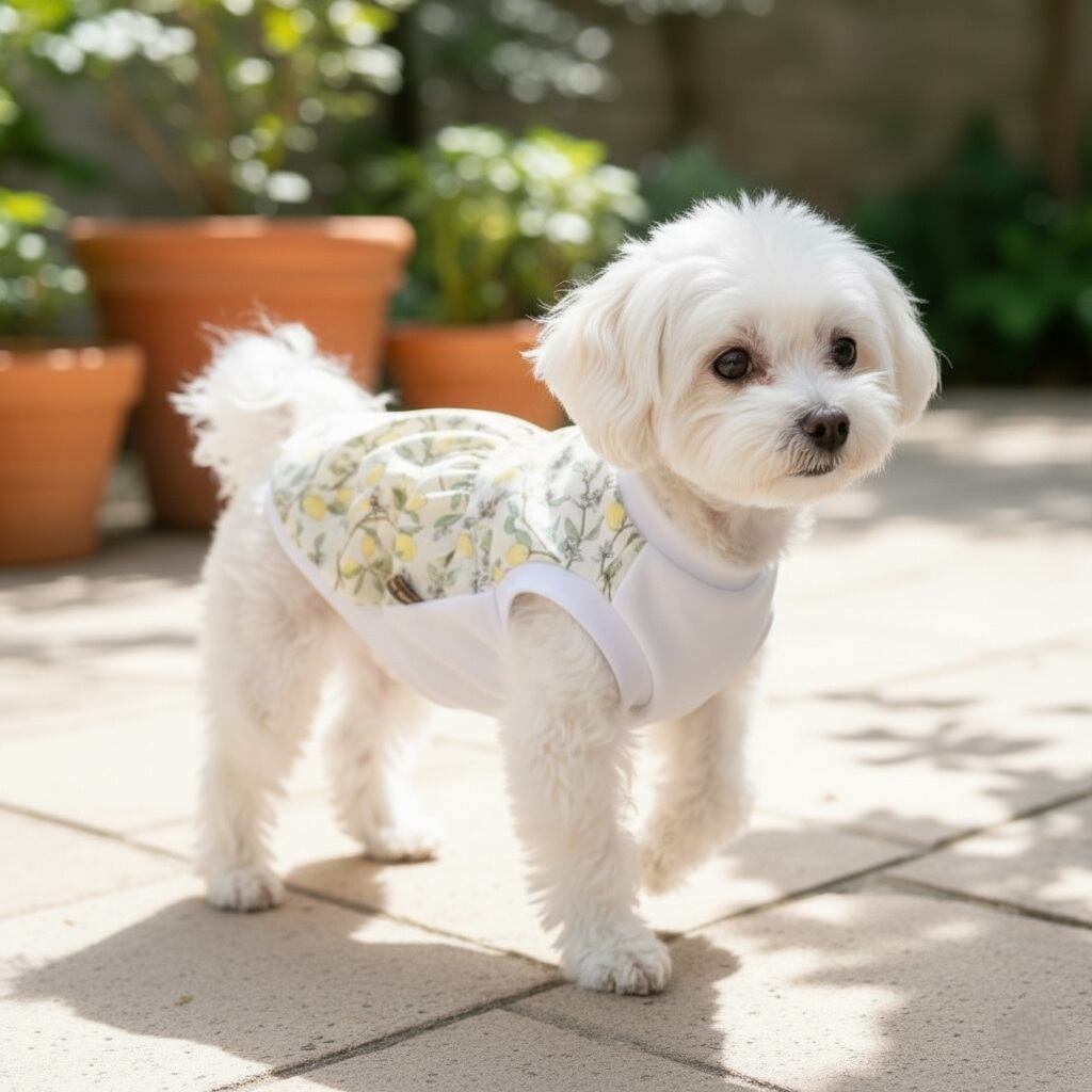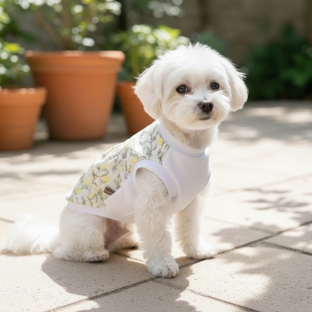春夏のお散歩にぴったりな『犬服*くすみカラーのレモンタンクトップ』。