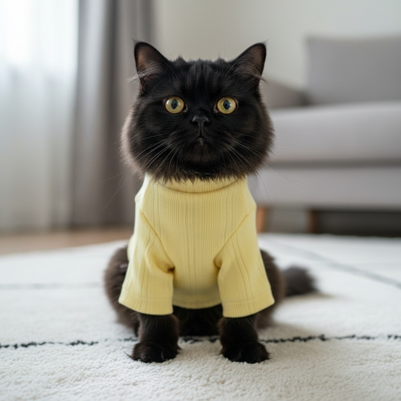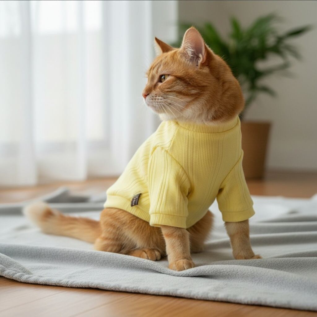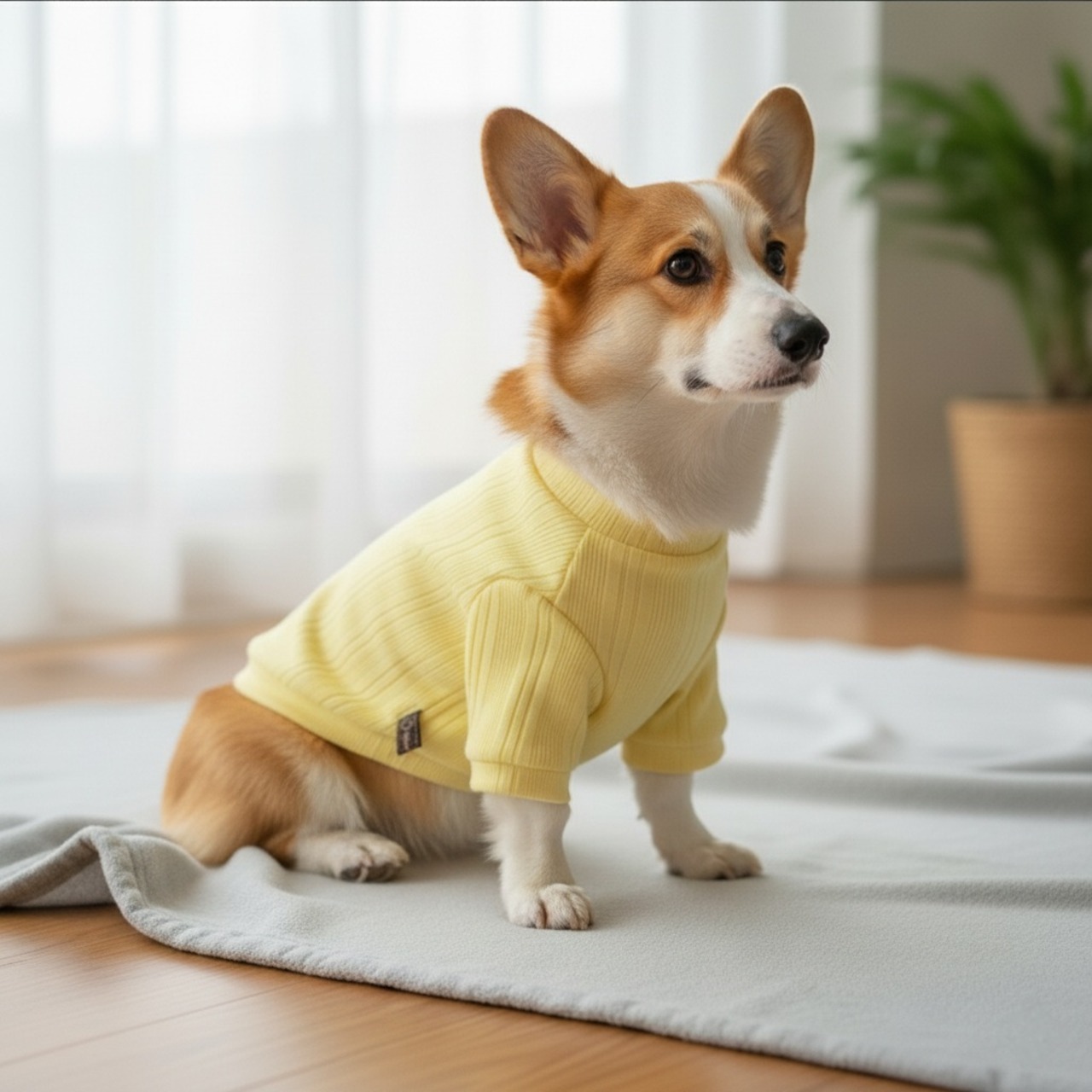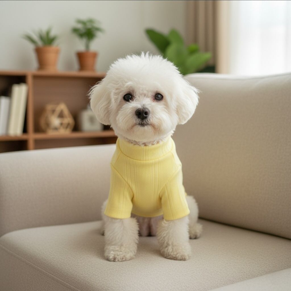犬服/猫服*シンプルリブニットカットソー//パステルイエロー