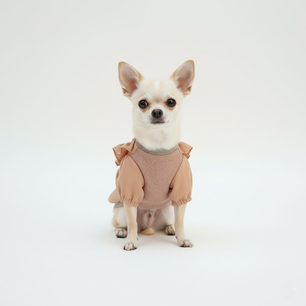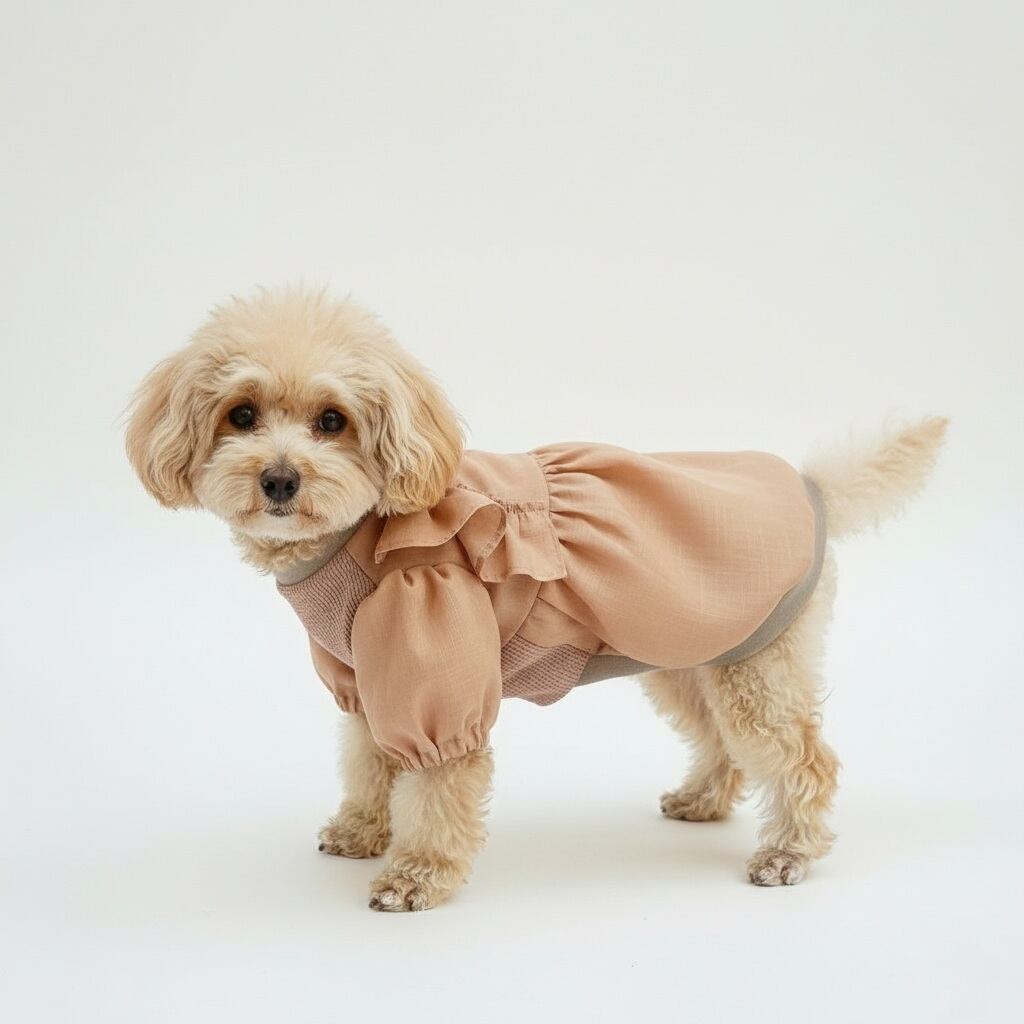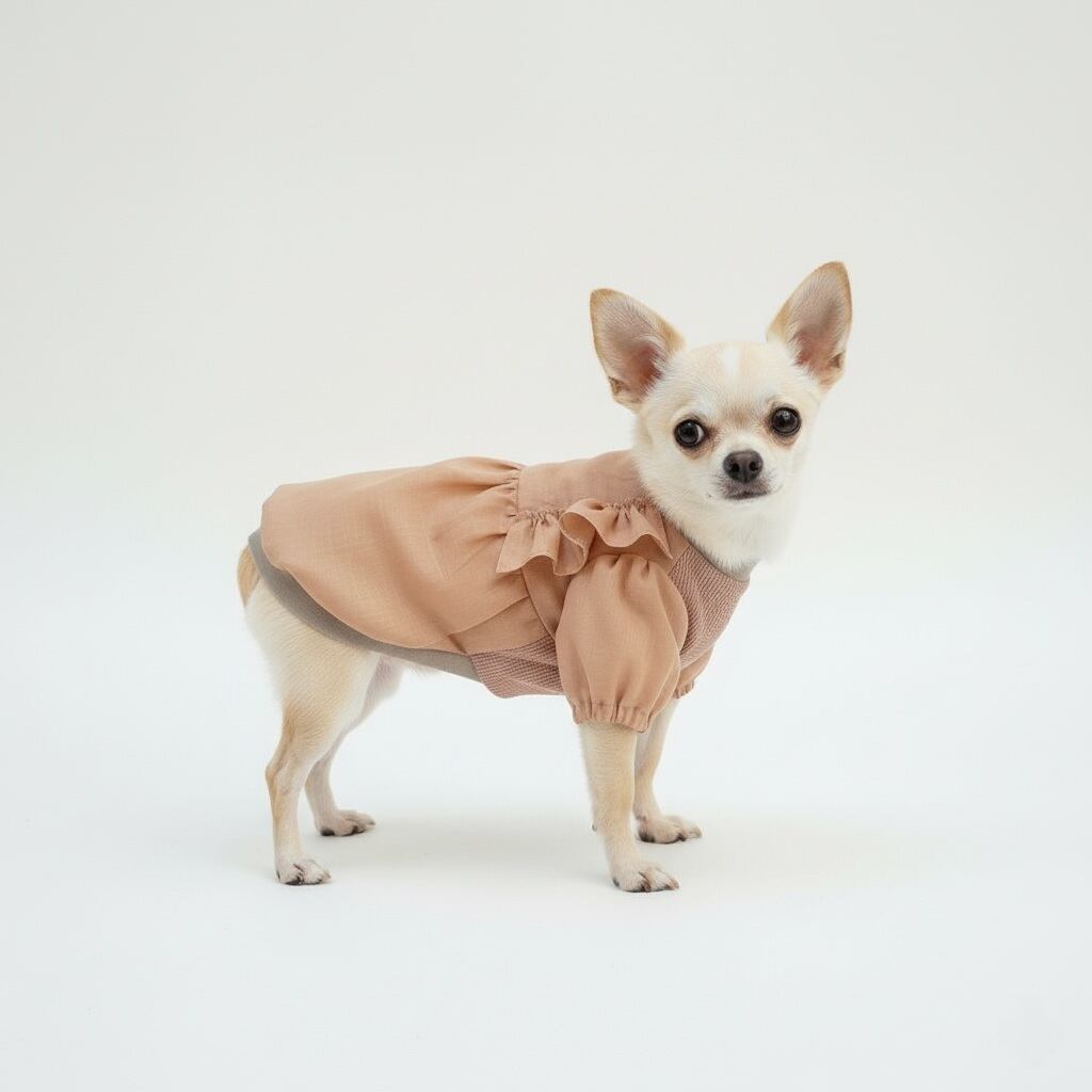 犬服*シフォンフリルワンピース//ミルクティーモカ