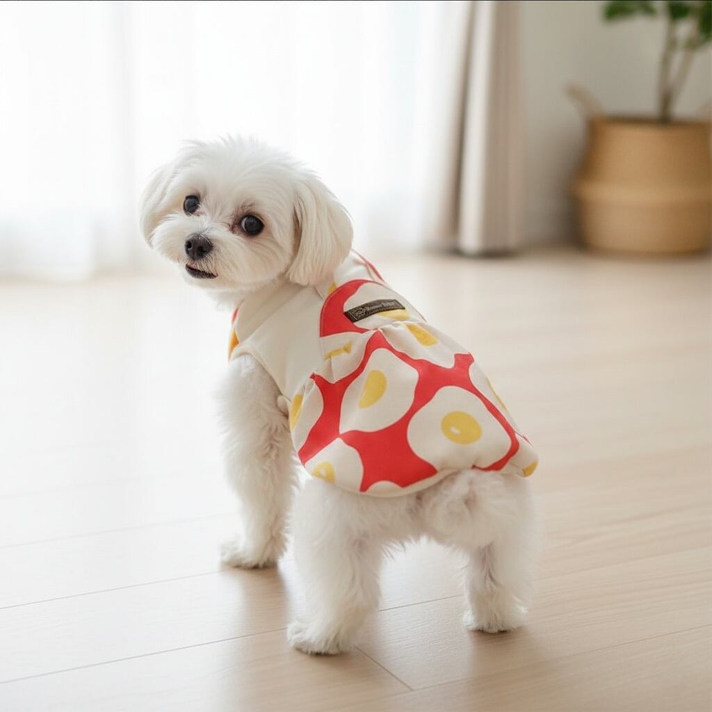 犬服*大きな目玉焼の重ね着風タンク//かすみレッド