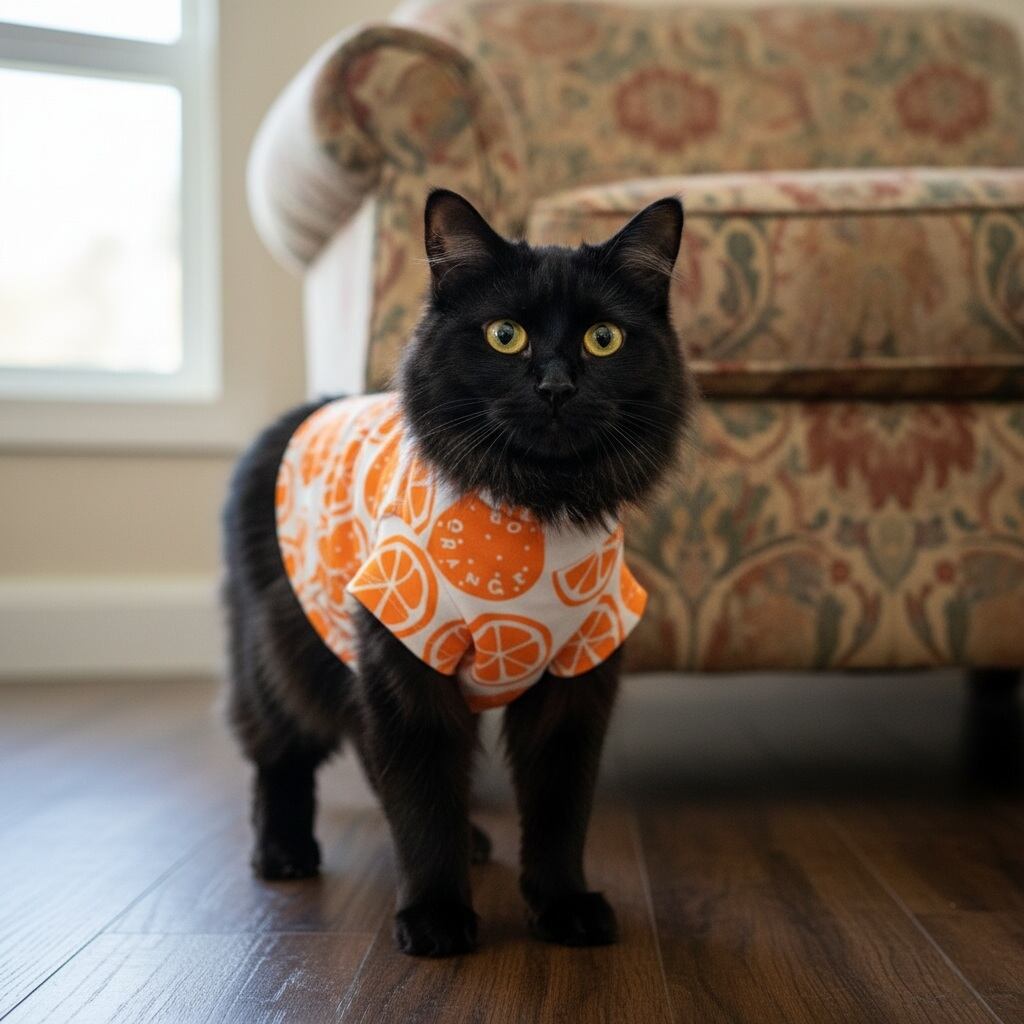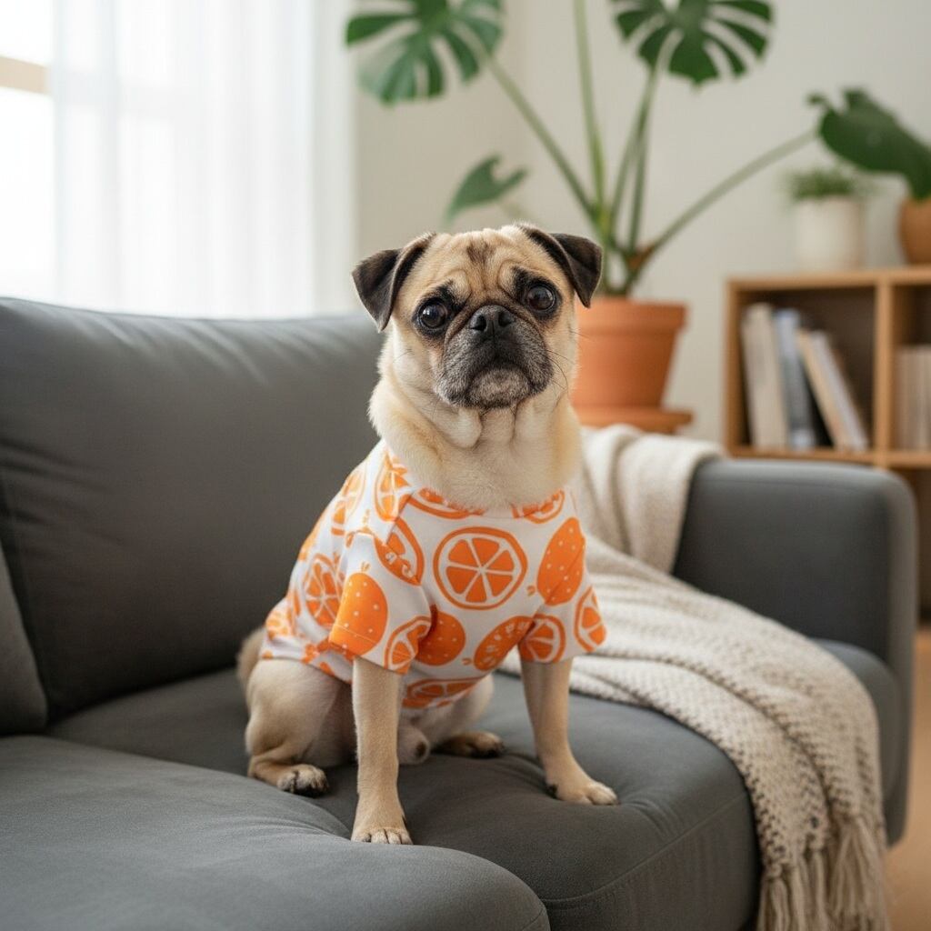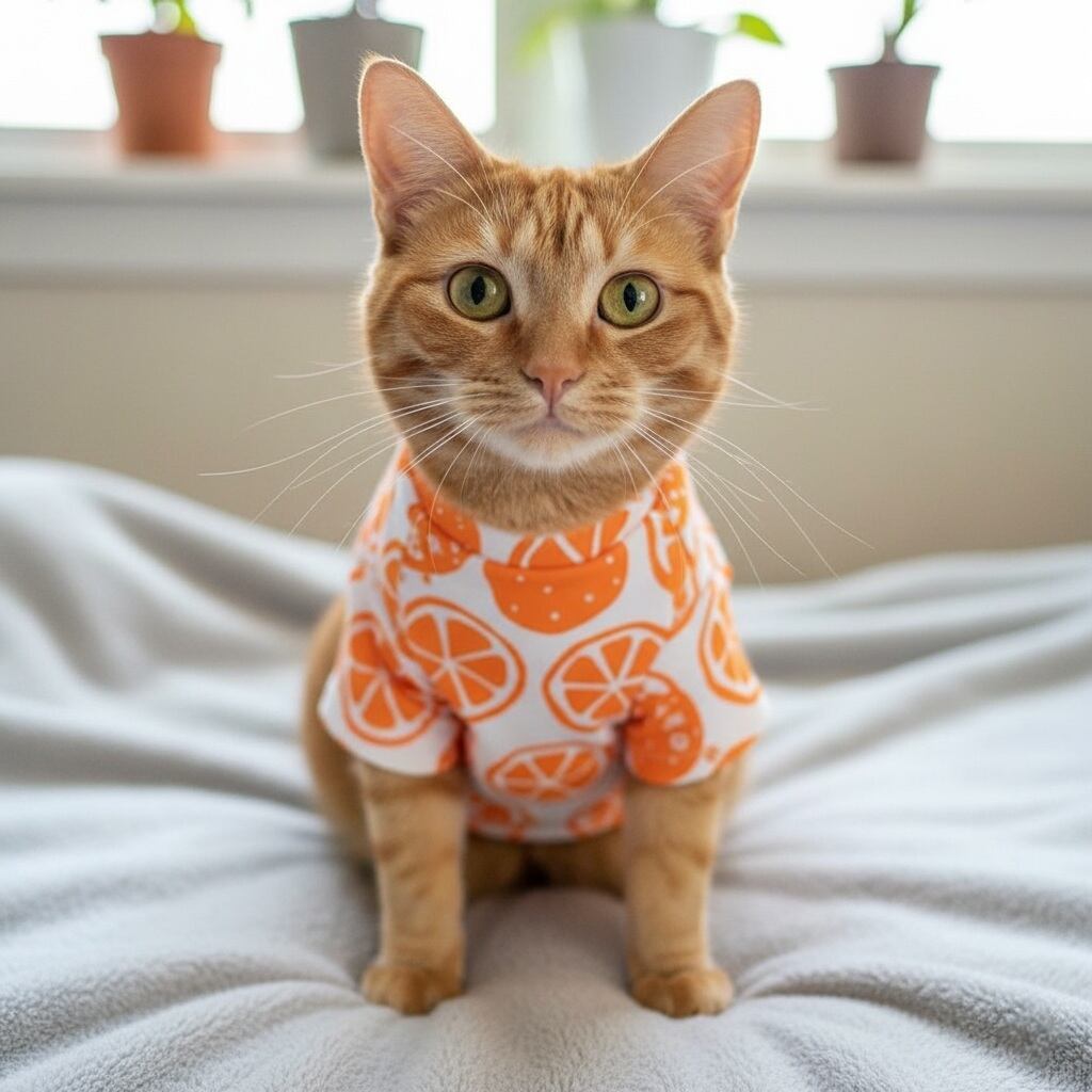 ビタミンカラーのオレンジカットソーは、愛犬や愛猫にぴったりな元気カラー。
